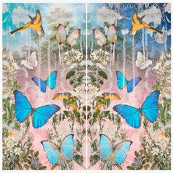 Grazie depicts a faceless woman in her usual street pop art style, inspired by traditional oriental images of women. I have chosen to paint this image on gold card reminiscent of the iconic gold perfume bottle designed by Goldfields and Banks. You can see the reflections in the background of imagery of the rainforest throughout the painting highlighting Australia’s unique flowers and plants. My modern painting style compliments this sassy, contemporary smelling perfume.
